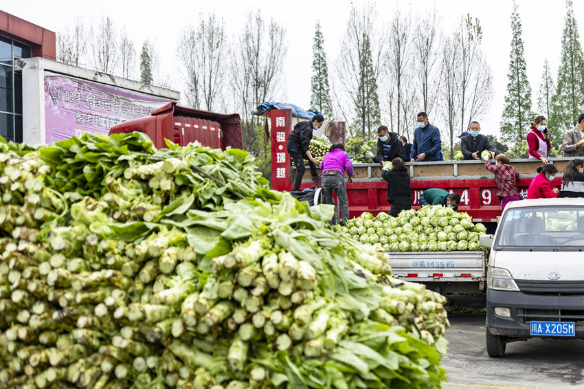 散發(fā)著清香氣息的萵筍,品質(zhì)一流的蓮花白、土豆、生菜、蘿卜,還有都江堰特產(chǎn)大蔥以及時下當(dāng)?shù)刈钚迈r的春筍等,經(jīng)過嚴(yán)格的農(nóng)產(chǎn)品安全檢測后,被裝上了愛心運輸車輛。