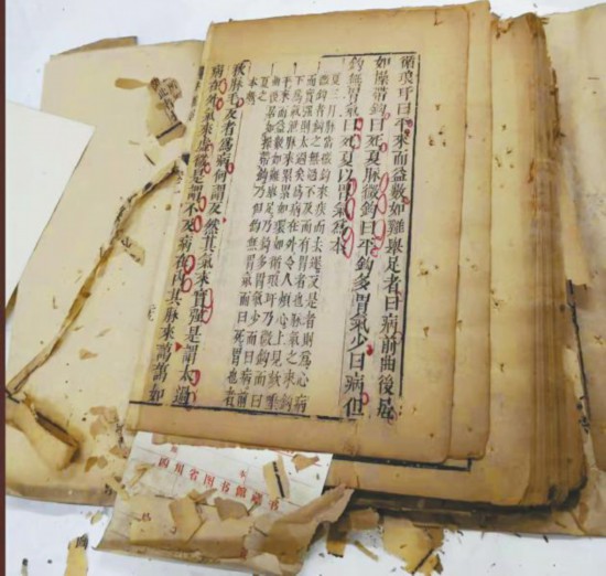 參加杭州培訓(xùn)之前,時任四川省圖書館特藏部主任沙銘璞老先生還特別將一塊用棉布包裹的厚厚的書磚交給袁東玨,并叮囑要把這部書搶救出來?!爱?dāng)時,四川省圖書館的古籍修復(fù)已中斷了很多年,古籍修復(fù)工作面臨青黃不接的局面,沙老希望我回來后能把這項工作接起來?!?/p>