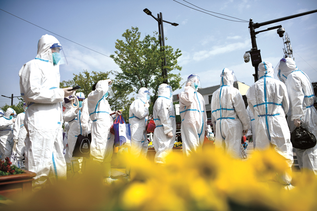 3月30日,嘉興經(jīng)開(kāi)區(qū)城南街道新月公寓的居民,在工作人員的引導(dǎo)下,有序登上疫情防控專用大巴,前往各醫(yī)學(xué)觀察隔離點(diǎn)。(王振宇)