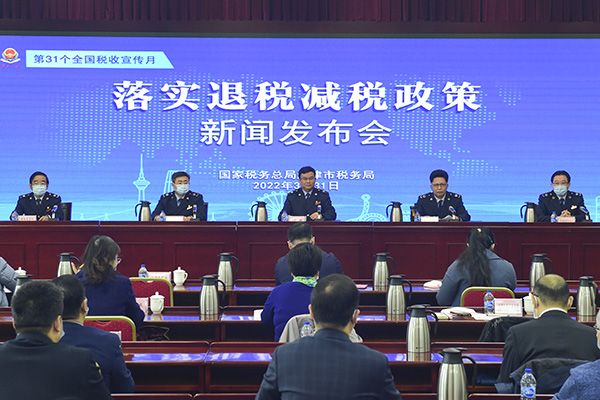 天津市稅務(wù)局黨委委員、副局長(zhǎng)、市局退稅減稅辦主任付強(qiáng)通報(bào)了天津市稅務(wù)系統(tǒng)落實(shí)退稅減稅降費(fèi)政策的總體部署,天津市稅務(wù)局黨委委員、總經(jīng)濟(jì)師、新聞發(fā)言人張連祥主持發(fā)布會(huì),并就組織開(kāi)展稅收宣傳月系列活動(dòng)進(jìn)行介紹,相關(guān)業(yè)務(wù)處室圍繞更好落實(shí)新的組合式稅費(fèi)支持政策、提升稅費(fèi)服務(wù)質(zhì)效作了具體說(shuō)明。