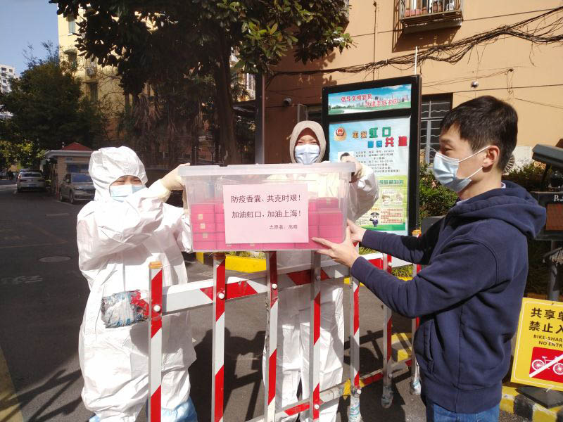 人民網(wǎng)上海3月31日電 (唐小麗、馬作鵬)“這些避疫香囊是我的一點(diǎn)心意?!?月30日下午,高晴將她自制的100多只避疫香囊,轉(zhuǎn)送給虹口區(qū)曲陽路街道赤峰二小區(qū)正在抗疫的志愿者們。