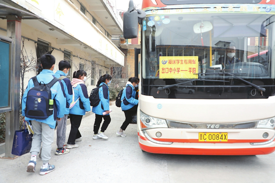 2013年,陽泉市平定縣實(shí)行交通惠民“暖心工程”,開通了免費(fèi)接送寄宿制學(xué)生專用車,每周五下午到校接送學(xué)生回家,周一早晨再接送他們安全返校。截至目前,平定公交公司共開通接送寄宿生專線72條,投入運(yùn)營車輛95臺,覆蓋全縣10個(gè)鄉(xiāng)(鎮(zhèn))的202個(gè)村莊、31所學(xué)校、2600余名寄宿制學(xué)生。圖為近日,該縣岔口中學(xué)操場上,分散居住在十里八鄉(xiāng)的寄宿制學(xué)生正準(zhǔn)備乘車回家。(張春林?jǐn)z)