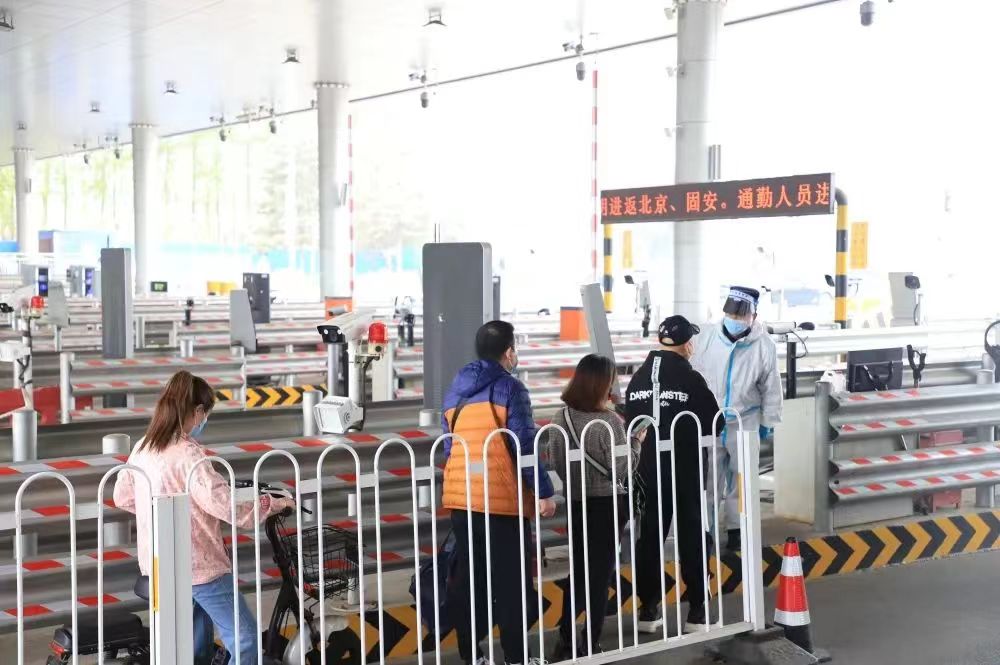 “根據(jù)疫情防控工作,4月11日零時(shí)起,固安縣通勤人員恢復(fù)進(jìn)返北京、固安。目前,堅(jiān)持非通勤人員非必要不進(jìn)京,如因重大疾病等極特殊原因確需進(jìn)京的人員,需出示相應(yīng)證明后進(jìn)京,并嚴(yán)格執(zhí)行北京市疫情防控政策?!惫贪部h辛立村公安檢查站站長徐立說。
