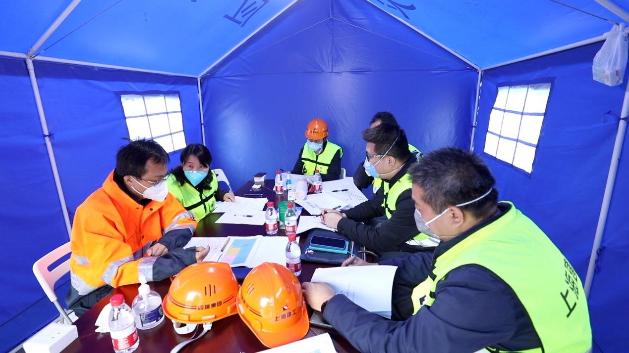 “3月底的上海,還有點冷,沒有被子蓋,我們就裹著衣服,每天只能睡不超過兩小時?!鄙虾=üぜ瘓F(tuán)副總工程師王美華是施工現(xiàn)場為數(shù)不多的女性?,F(xiàn)場24小時不停工,工人兩班倒,交班后就地鋪板睡覺,但應(yīng)急指揮部管理人員要隨時待命,解決現(xiàn)場各類問題,只能找間隙蜷縮在車?yán)镄菹⒁幌隆?/p>