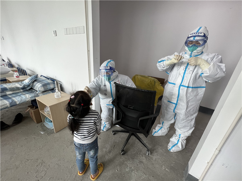其中一個12歲的小朋友,身邊沒有監(jiān)護人,方艙點位長、浦東新區(qū)紀委常委顧明安親自將他托付給專程過來接他的街道防疫工作人員。