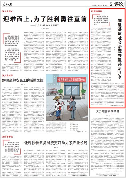 人民日?qǐng)?bào)“現(xiàn)場(chǎng)評(píng)論”:推進(jìn)基層社會(huì)治理共建共治共享