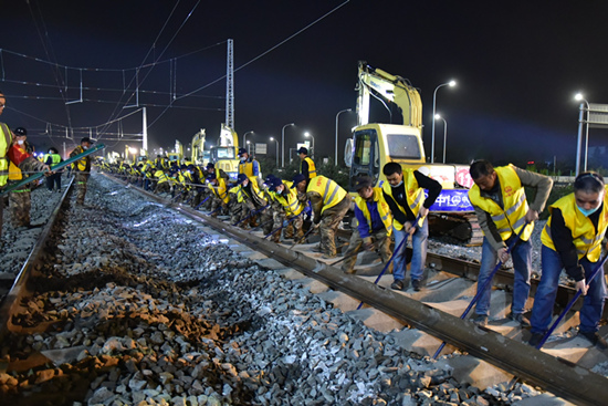 “22日20時40分至23日5時40分、24日22時至25日7時正式進行京唐鐵路與京哈鐵路上下行42號道岔整體橫移插入施工,并取得圓滿成功?!敝袊F路北京局集團有限公司所屬唐山工務段副段長王建介紹說,自3月15日以來,為嚴格落實沿線疫情防控政策,該段組織相關科室、車間20余名干部職工吃住在現(xiàn)場,對兩組道岔預鋪平臺搭設、預鋪組織、線下焊軌、探傷、標志標識油刷、放散、精調等進行全程技術指導,全力確保岔位和平縱斷面上線零誤差。