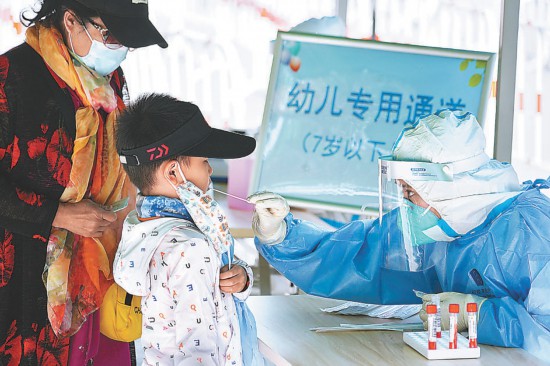 昨天(5月7日),朝陽(yáng)區(qū)啟動(dòng)新一輪大規(guī)模核酸檢測(cè)。為方便居民進(jìn)行核酸采樣,減少交叉幾率,朝陽(yáng)區(qū)小關(guān)街道奧林匹克文化廣場(chǎng)核酸檢測(cè)點(diǎn)設(shè)置“幼兒專用通道”,專為7歲以下兒童提供核酸檢測(cè)服務(wù)。本報(bào)記者 程功攝