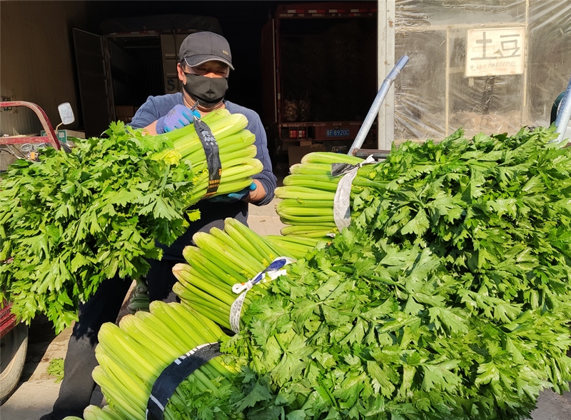 “市場(chǎng)每天大約回貨是40多輛車,蔬菜一百七八十噸,水果一百四五十噸。蘋果、梨、香蕉等常見水果及白菜、西紅柿、黃瓜等日常蔬菜供應(yīng)充足,可以充分滿足市民需求。”市場(chǎng)副經(jīng)理王健說。