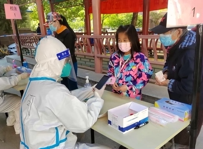 “請您掃碼出示健康寶信息。我來教您如何幫助小朋友代查健康寶狀態(tài)……”5月4日下午2點(diǎn),宋博皓在建國門街道朝陽門南小街16號樓南側(cè)通道的核酸檢測點(diǎn)忙碌著。