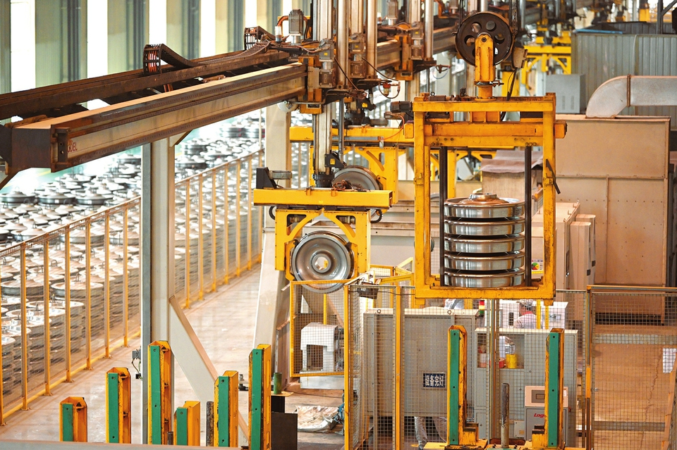 5月10日,太重軌道公司輪對(duì)生產(chǎn)車(chē)間檢測(cè)線(xiàn)上,工作人員正在對(duì)即將出廠的高鐵鋼輪進(jìn)行檢驗(yàn)。該公司將精益管理和改革創(chuàng)新當(dāng)做抓好各項(xiàng)工作任務(wù)的關(guān)鍵,深耕國(guó)際國(guó)內(nèi)市場(chǎng),積極推進(jìn)海外項(xiàng)目合作,穩(wěn)固國(guó)內(nèi)傳統(tǒng)市場(chǎng)行業(yè),打破傳統(tǒng)營(yíng)銷(xiāo)方式,積極培育新模式、新業(yè)態(tài),不斷加強(qiáng)核心技術(shù)攻關(guān),拓展新的產(chǎn)品市場(chǎng)。(記者李兆民攝)