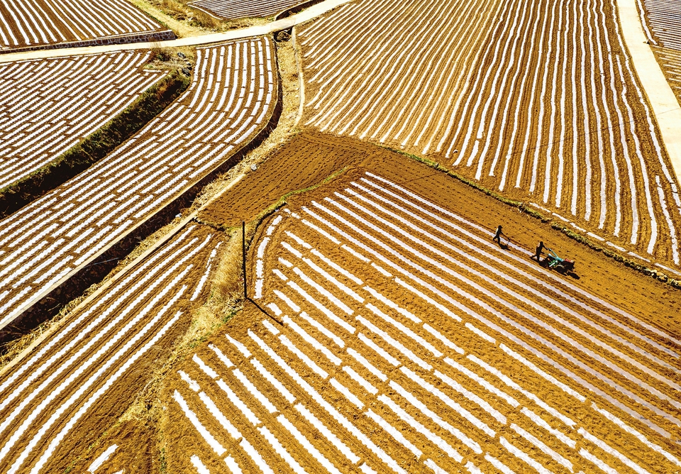 5月15日,晉中市左權(quán)縣下莊村鋪滿地膜的農(nóng)田在陽(yáng)光照射下,構(gòu)成一幅錦繡太行的詩(shī)畫(huà)田園景致。近年來(lái),左權(quán)縣積極落實(shí)糧食直補(bǔ),地膜、農(nóng)機(jī)財(cái)政補(bǔ)貼的政策,極大地調(diào)動(dòng)了農(nóng)民種糧的積極性,糧食連續(xù)獲得豐收。同時(shí),通過(guò)農(nóng)旅融合,詩(shī)畫(huà)般的田園風(fēng)光吸引了不少游客,助推農(nóng)民增收。(邢蘭富)