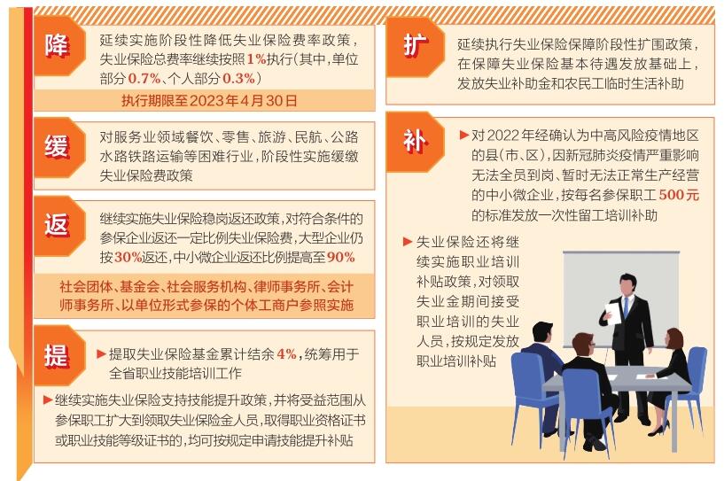 這次失業(yè)保險新政重點圍繞“降、緩、返、提、擴(kuò)、補(bǔ)”等方面(詳細(xì)內(nèi)容見下圖)推出穩(wěn)崗位提技能防失業(yè)舉措。(記者高建華)