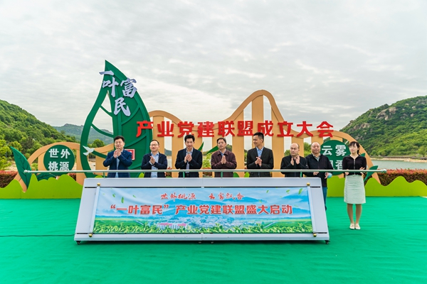 連云區(qū)“一葉富民”茶產(chǎn)業(yè)黨建聯(lián)盟盛大啟動。連云區(qū)委宣傳部供圖