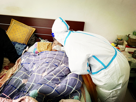 “暖心大白”為行動(dòng)不便的老人上門做核酸。 樂亭縣委宣傳部供圖