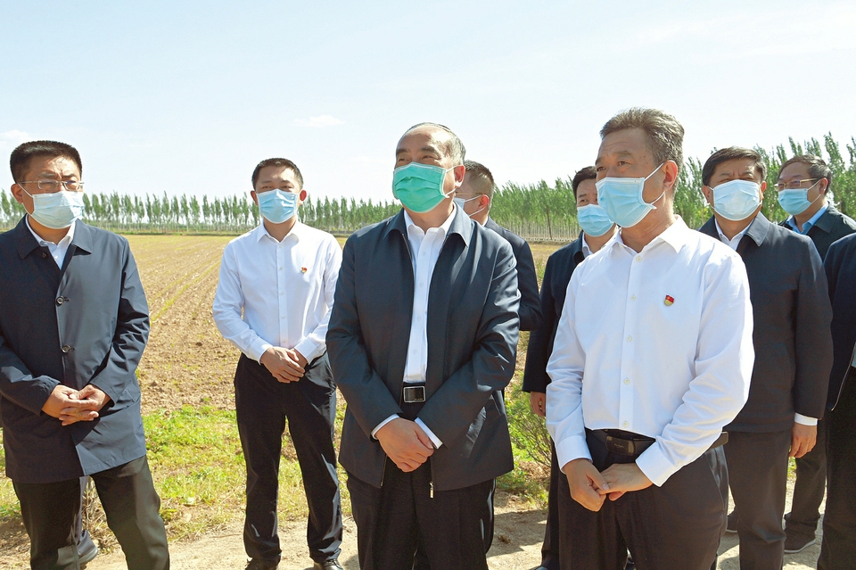 五月十七日下午,省委書記林武來到汾陽市賈家莊鎮(zhèn)古浮圖村,走進(jìn)田間察看玉米、大豆幼苗長勢(shì)和土壤墑情。記者史曉波攝