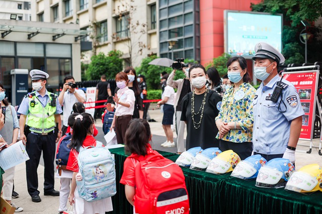 “出門著急了”“忘戴了”“天熱了,戴著麻煩”“不好意思,下次一定戴好頭盔”……5月25日清晨,西安高新交警聯(lián)合高新一小共同行動,開展“一盔一帶”安全守護行動,在校門口教育、提醒騎行送孩子上學而未給孩子佩戴頭盔的家長重視交通出行安全?;顒蝇F(xiàn)場,學校家委會還組織為沒有戴頭盔的孩子贈送了頭盔。當天,高新區(qū)30余所學校安全負責人全程觀摩了此次活動。