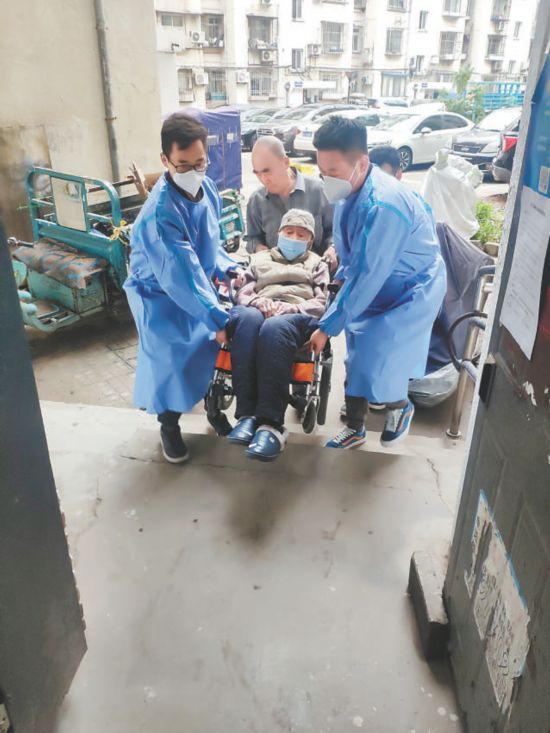 樓道很窄,抬輪椅下來實(shí)在不容易。老人坐在輪椅上,家人在后面扶著,張佳楠則和另一位志愿者在前面抬。他雙手托著輪椅,腳慢慢地往下尋著臺階,生怕踩空了。才下了幾級,大家就滿頭大汗了。十多分鐘后,老人終于下樓,得以及時就醫(yī)治療。