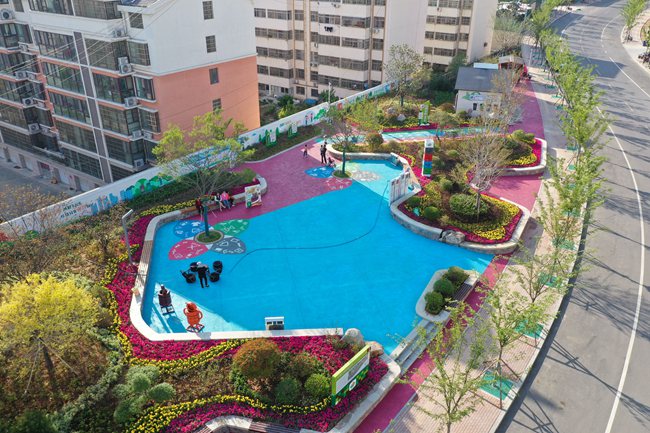 人民網(wǎng)五蓮6月10日電 進入六月,每到清晨或傍晚,在一片綠意盎然中,老人帶著蹣跚學步的孩子一起玩耍,三兩為伴的青年人在小徑上休閑散步,這樣溫馨又熱鬧的場景,在五蓮縣城星羅棋布的口袋公園不時上演。
