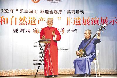 6月11日,“文化和自然遺產(chǎn)日”非遺展演展示暨河北非遺·老字號(hào)購(gòu)物節(jié),在河北博物院舉辦。圖為京東大鼓展示表演。河北日?qǐng)?bào)通訊員 王 建攝