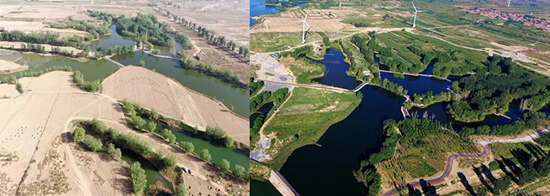 懷來官廳水庫周邊2017年和2021年防沙治沙對比圖。 河北省林業(yè)和草原局供圖