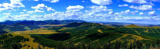 登上塞罕壩機械林場的月亮山望海樓,舉目眺望,遠處綠色盡收眼底。