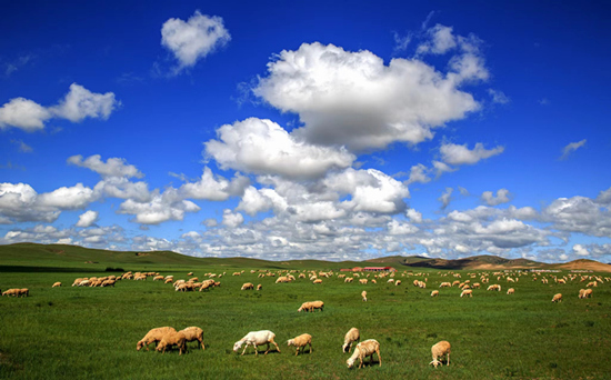 承德豐寧縣風(fēng)沙治理讓天藍草長羊肥。 河北省林業(yè)和草原局供圖