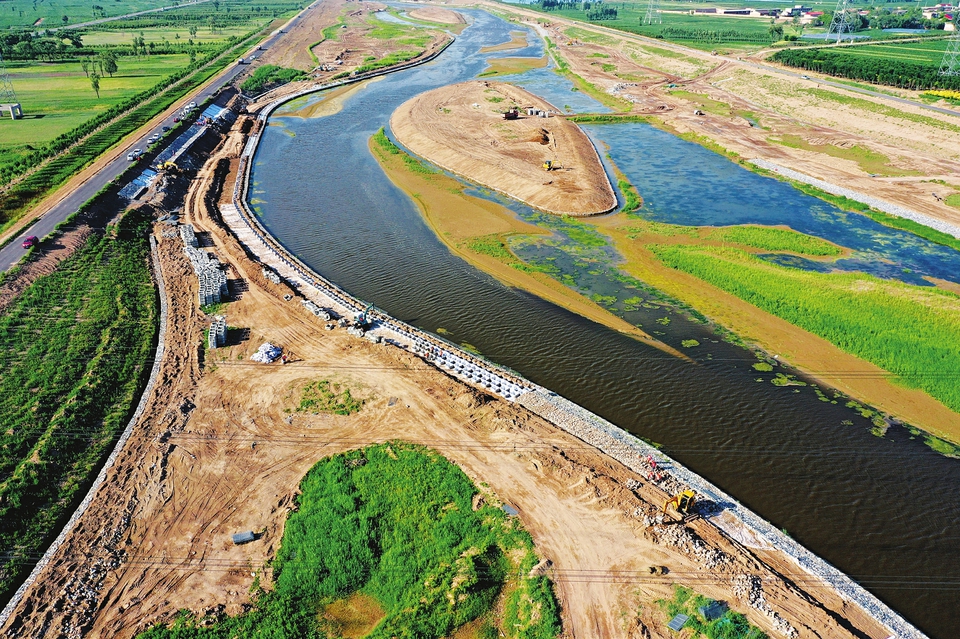 7月5日,正在建設(shè)中的汾河百公里中游示范區(qū)清徐段堤內(nèi)工程,航拍鏡頭里,湖心島已呈現(xiàn)美麗的弧線。清徐段工程治理范圍北起汾河二壩,南至清徐文水縣界,長(zhǎng)17.7公里,主要工程內(nèi)容包括水利工程和景觀綠化工程,計(jì)劃今年9月底完工。承擔(dān)施工的中鐵十七局集團(tuán)五公司項(xiàng)目部,正掀起為期45天的勞動(dòng)競(jìng)賽施工高潮。項(xiàng)目的建設(shè),為推動(dòng)汾河流域生態(tài)保護(hù)與修復(fù),滿足兩岸防洪安全、改善河道環(huán)境,形成百公里水利長(zhǎng)廊、生態(tài)長(zhǎng)廊、文旅長(zhǎng)廊,最終實(shí)現(xiàn)汾河風(fēng)光美起來(lái)發(fā)揮積極作用。 (記者孫榮祥攝)