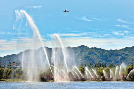 36支水槍同時(shí)出水,受災(zāi)區(qū)域的水位快速下降——“城市綜合排澇”展現(xiàn)了消防救援人員聯(lián)動(dòng)排水集團(tuán)緊急排險(xiǎn)的能力。 本報(bào)記者 白繼開(kāi)攝