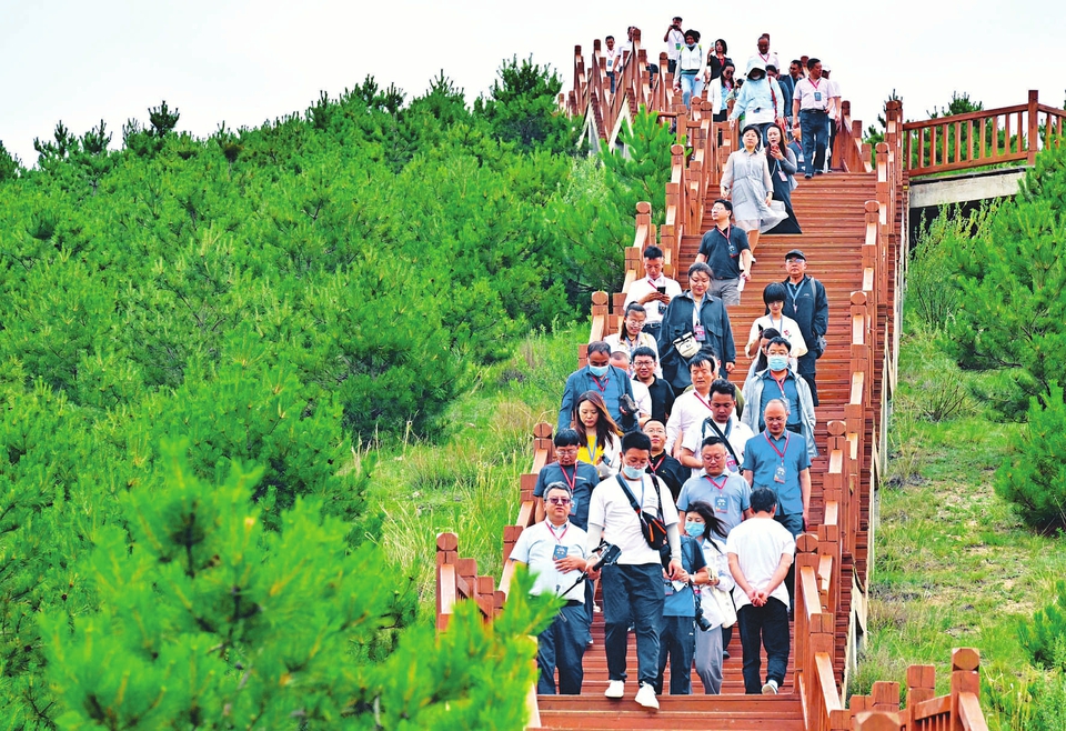 7月17日,來自全國各地的游客在大同市云州區(qū)火山群國家地質(zhì)公園狼窩山景區(qū)暢游。近年來,云州區(qū)完成火山群綠化30萬畝,建設(shè)火山旅游路50多公里,配套建設(shè)了火山地質(zhì)廣場、火山觀景臺(tái)、火山地質(zhì)公園博物館等,深受游客青睞。(劉通 王中勛攝)