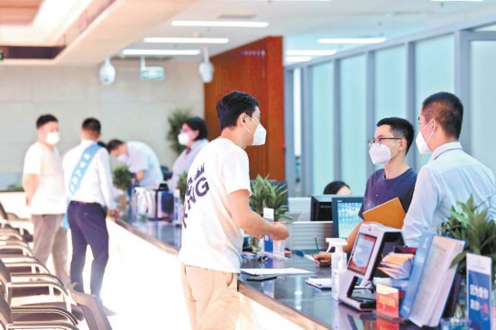 昨天,北京經(jīng)濟技術(shù)開發(fā)區(qū)政務(wù)服務(wù)大廳,工作人員正在熱情接待企業(yè)代表辦理相關(guān)業(yè)務(wù)。本報記者 和冠欣攝