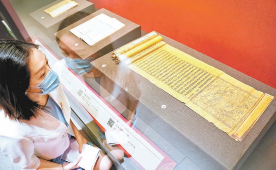 昨天,在“冊府?dāng)X珍——民族文化宮典藏古籍精品展”現(xiàn)場,觀眾仔細(xì)欣賞展品。本報記者 方非攝