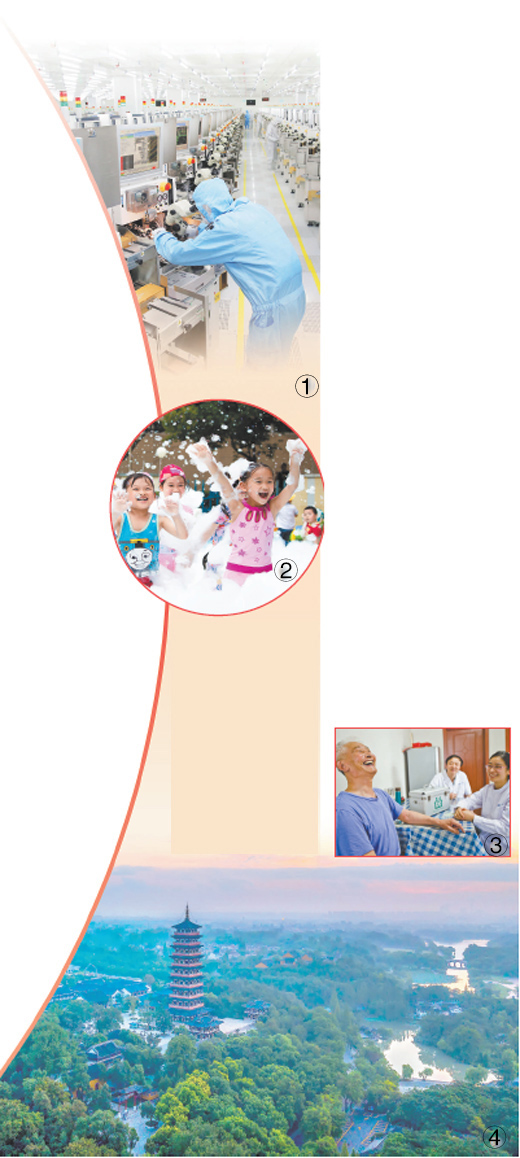 圖④:江蘇高品質(zhì)推進(jìn)大運(yùn)河文化帶和大運(yùn)河國(guó)家文化公園建設(shè),大運(yùn)河文化帶江蘇段成為示范樣板。圖為大運(yùn)河河水滋潤(rùn)的揚(yáng)州大地。