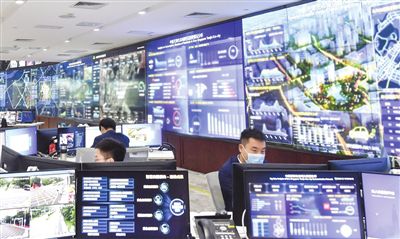 走進(jìn)這座智慧城市的“中樞”──生態(tài)城“城市大腦”運營中心,只見以深藍(lán)為主色調(diào)的超大液晶屏鋪滿整面墻,科技感拉滿。屏幕上的數(shù)據(jù)和信息背后,是建設(shè)、環(huán)境、醫(yī)療、應(yīng)急等10多個領(lǐng)域的實時運行情況,涉及30余個系統(tǒng)、400余項指標(biāo)。工作人員目不轉(zhuǎn)睛地監(jiān)測、記錄、反饋,在做到心中有“數(shù)”的同時,也將城市管理運營模式從“被動處置”轉(zhuǎn)為“主動干預(yù)”。