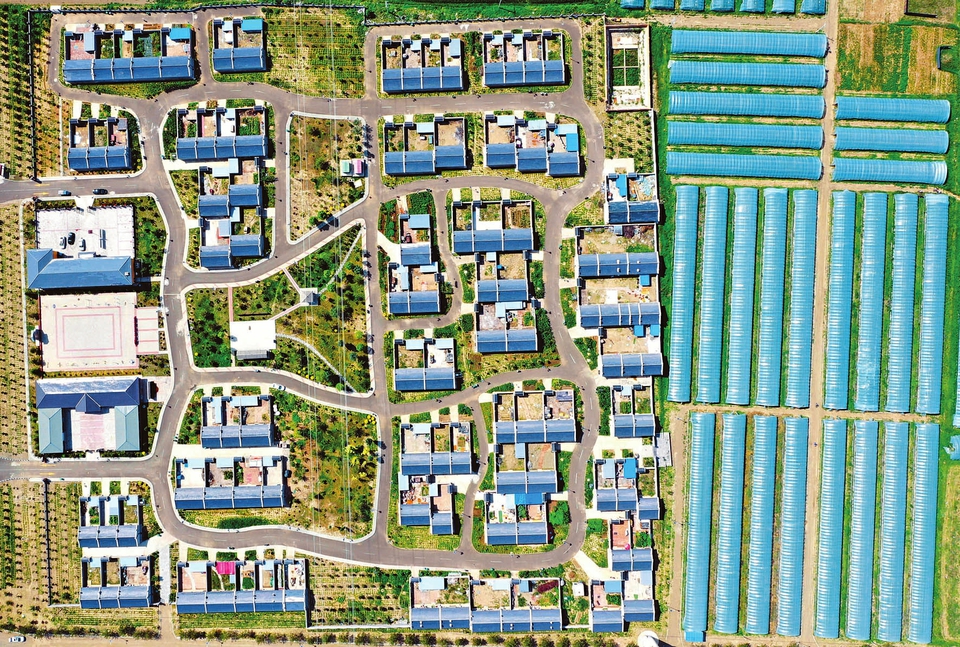 7月18日,俯瞰大同市陽高縣花苑村,設(shè)施農(nóng)業(yè)基地與移民新居共同舒展開一幅鄉(xiāng)村振興的美麗畫卷。該村合理規(guī)劃、做大做強種植業(yè),村集體出資建大棚、與村民合作經(jīng)營,真正實現(xiàn)“搬得出、穩(wěn)得住、能致富”。(記者劉通 通訊員王中勛攝)