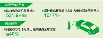 回收利用體系初步建立。截至今年6月底,我國已累計(jì)建成10171個新能源汽車動力電池回收服務(wù)網(wǎng)點(diǎn),基本實(shí)現(xiàn)退役電池就近回收。