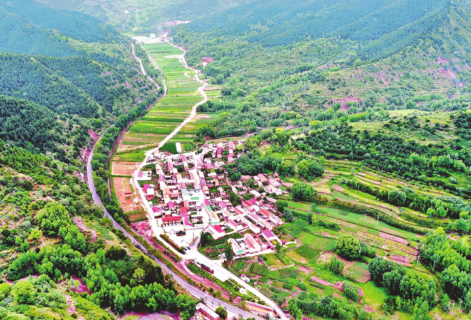 7月24日,俯瞰古交市邢家社鄉(xiāng)宋家莊村,道路蜿蜒,榛林蔥翠。近年來,該村依托當(dāng)?shù)刈匀画h(huán)境優(yōu)勢,以經(jīng)濟(jì)聯(lián)合社占股60%、農(nóng)民承包地入股占40%的方式經(jīng)營,實(shí)現(xiàn)大果榛子規(guī)模化、集約化、產(chǎn)業(yè)化種植,舊日的撂荒地如今變成村民的聚寶盆。(記者劉通攝)