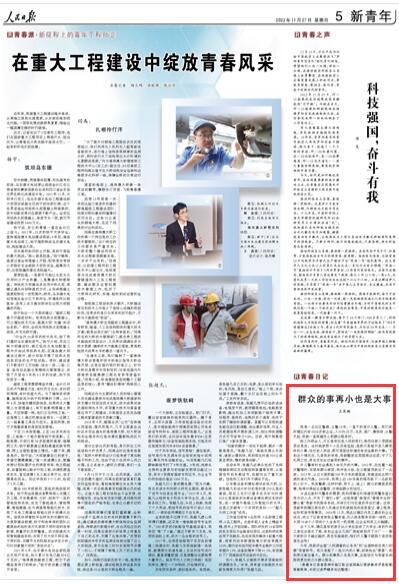 原題:群眾的事再小也是大事(青春日記)
