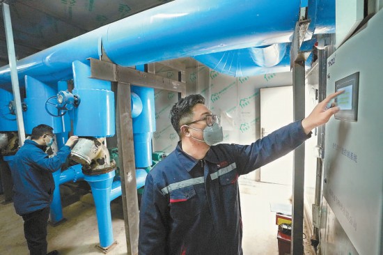 為應(yīng)對(duì)氣溫驟降,海淀區(qū)“無(wú)煤化”空氣能集中供暖騷子營(yíng)站的工作人員值守在崗,及時(shí)對(duì)運(yùn)行機(jī)組數(shù)量和水溫進(jìn)行調(diào)節(jié)。