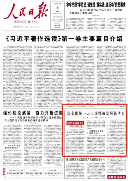 【人民日報(bào)頭版關(guān)注湖南】以全國統(tǒng)一大市場釋放發(fā)展新活力