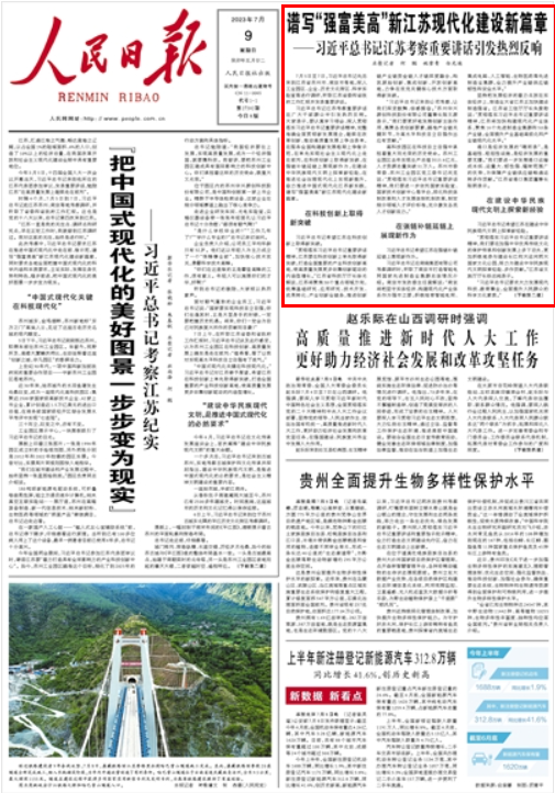 人民日?qǐng)?bào)丨譜寫(xiě)“強(qiáng)富美高”新江蘇現(xiàn)代化建設(shè)新篇章——習(xí)近平總書(shū)記江蘇考察重要講話引發(fā)熱烈反響