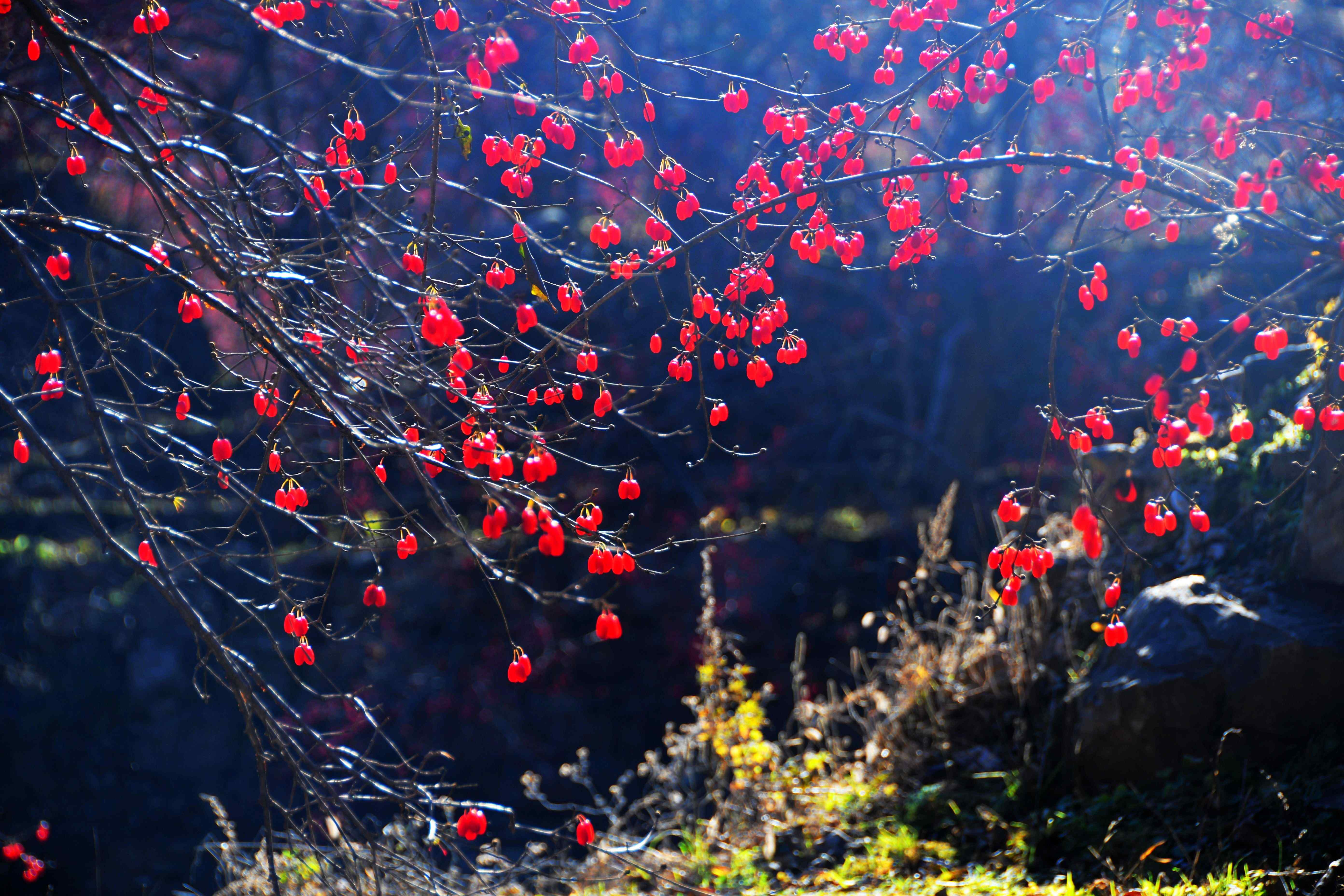 金秋時(shí)節(jié),漫山遍野的山茱萸。