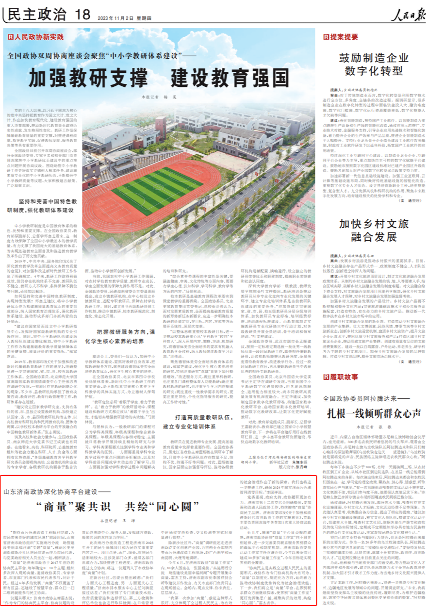 人民日報點贊濟(jì)南政協(xié)深化協(xié)商平臺建設(shè):“商量”聚共識 共繪“同心圓”