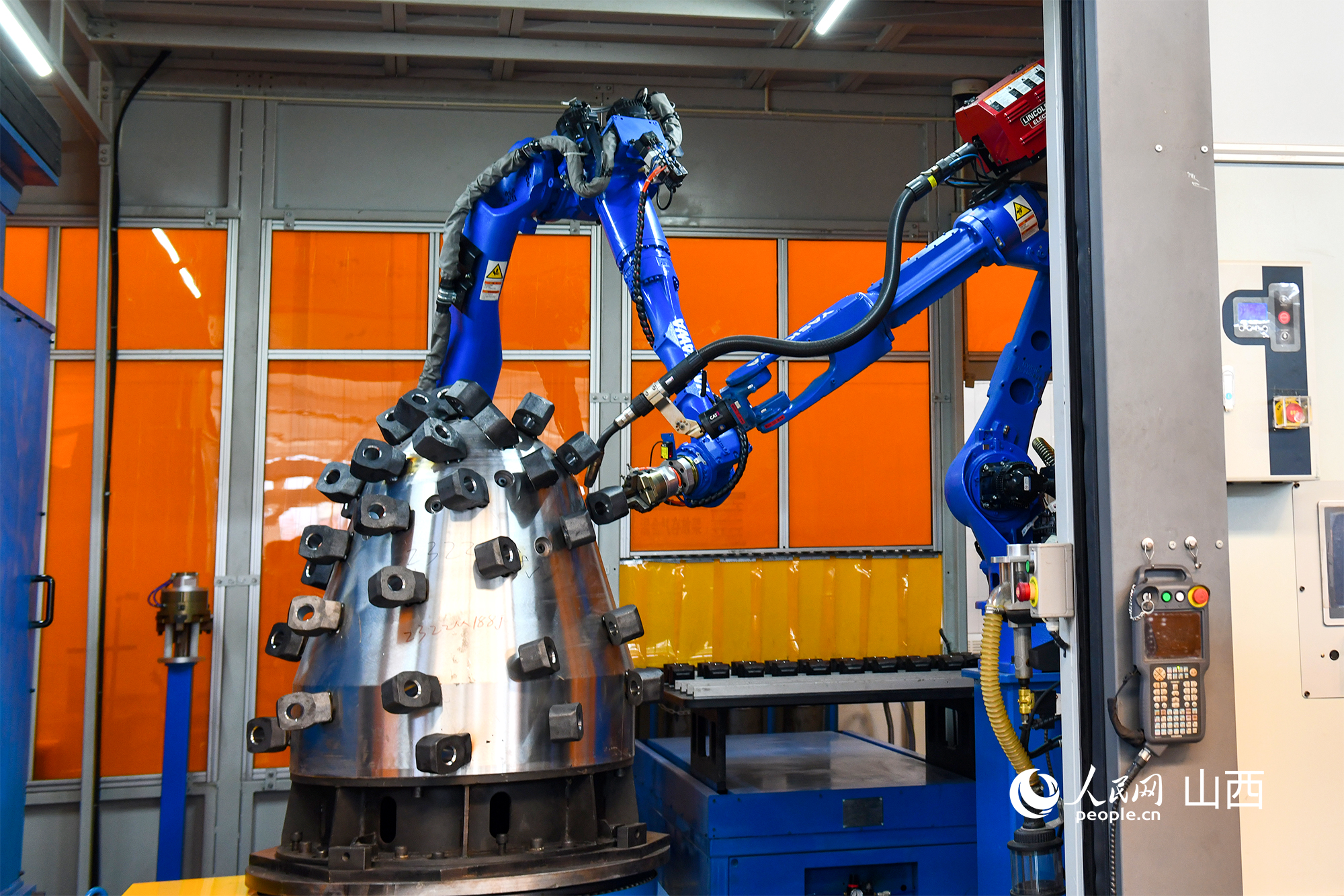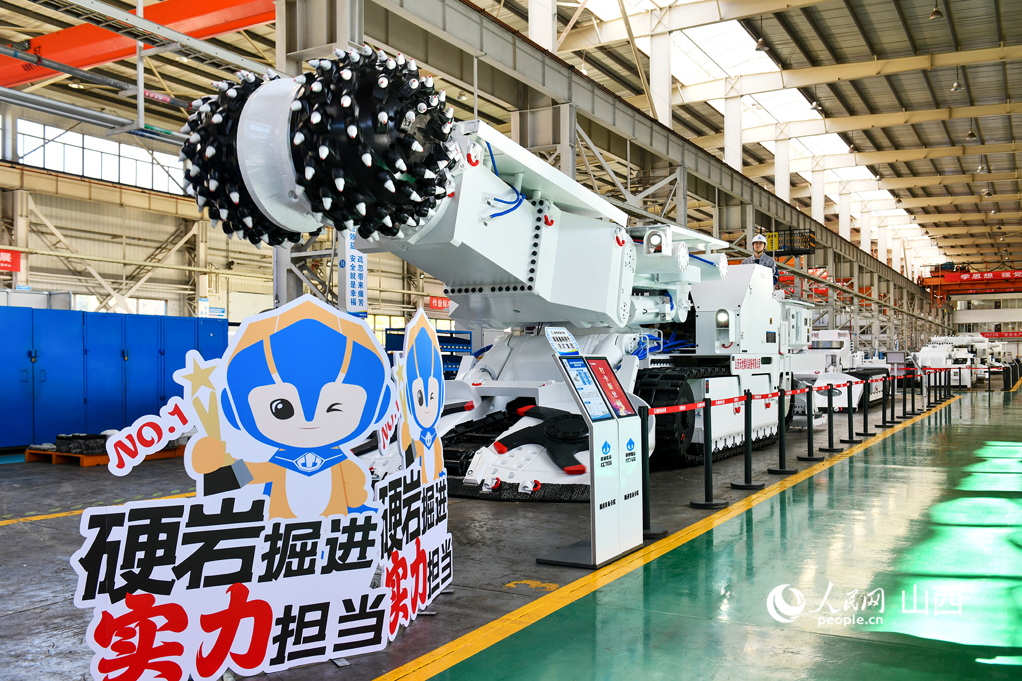 太原研究院彩虹基地生產(chǎn)車(chē)間陳列的巷道掘進(jìn)裝備。人民網(wǎng)記者 焦搏文攝