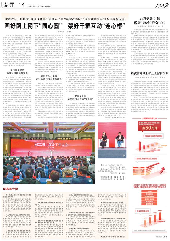互聯(lián)網時代,網絡早已成為群眾聚集的重要空間,生產生活的重要平臺,也成為新聞媒體強信心、聚民心的重要陣地。人民網作為網上的《人民日報》,高質量創(chuàng)辦“領導留言板”,了解群眾所思、所愿,收集好想法、好建議,積極回應關切、解疑釋惑,以一枝一葉總關情的為民情懷,為各級黨委政府搭建了同群眾交流的重要平臺,提供了貼近群眾、為群眾排憂解難的重要途徑。這是新時代堅持以人民為中心、走好群眾路線的生動實踐。