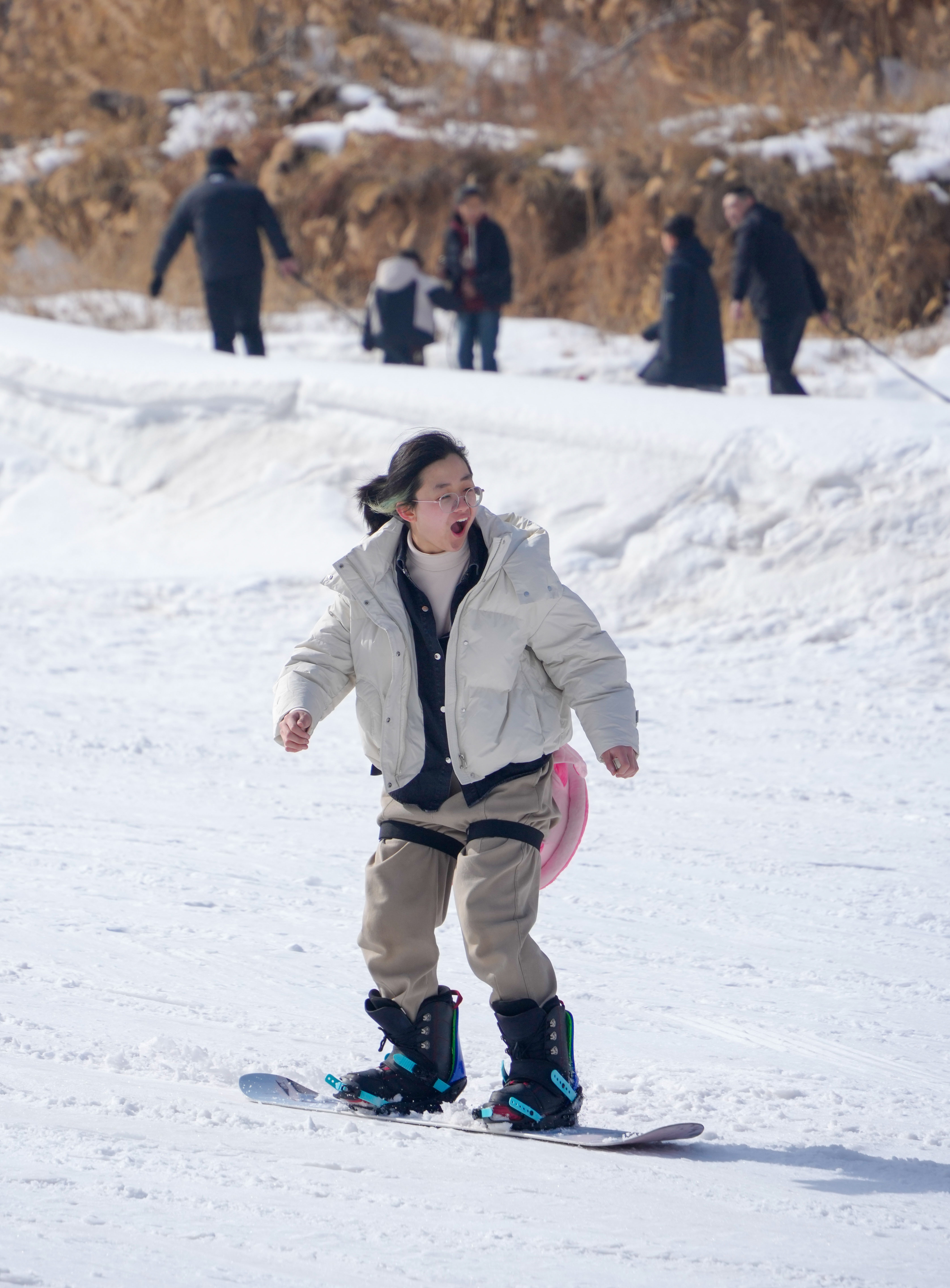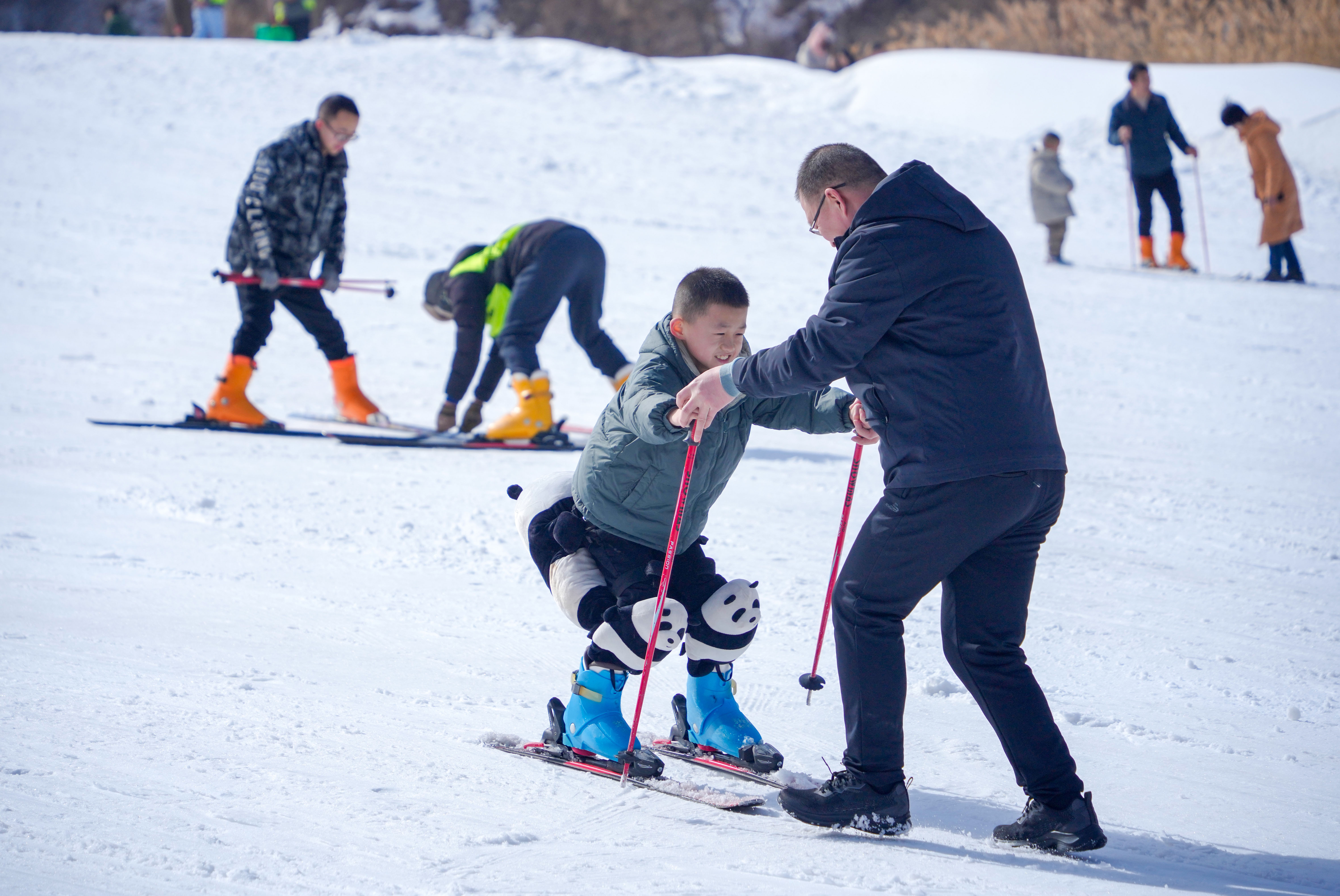 春節(jié)的‘紅’和冰雪的‘白’相遇,這是屬于中國人的獨(dú)特浪漫。2月10日(農(nóng)歷大年初一),在山西運(yùn)城,萬榮孤峰山滑雪場(chǎng)里熱鬧非凡。父母?jìng)兣惆楹⒆幼哌M(jìn)滑雪場(chǎng),體驗(yàn)滑雪、雪圈等項(xiàng)目。