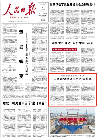 人民日?qǐng)?bào)頭版 | 山西加快建設(shè)電力外送基地