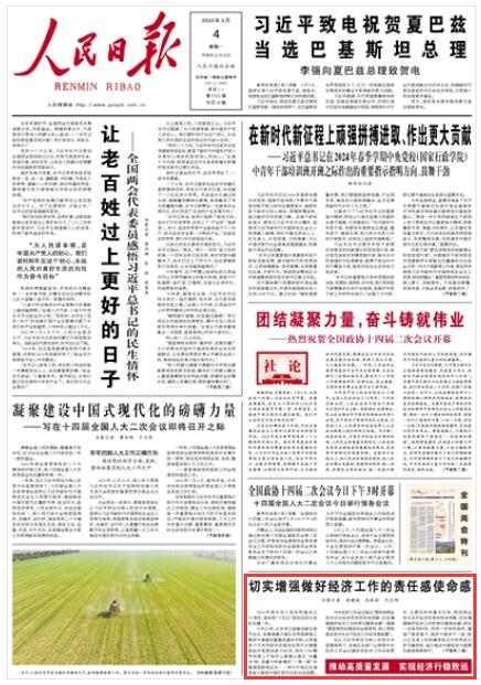 《人民日報(bào)》2024年3月4日01版 版面截圖