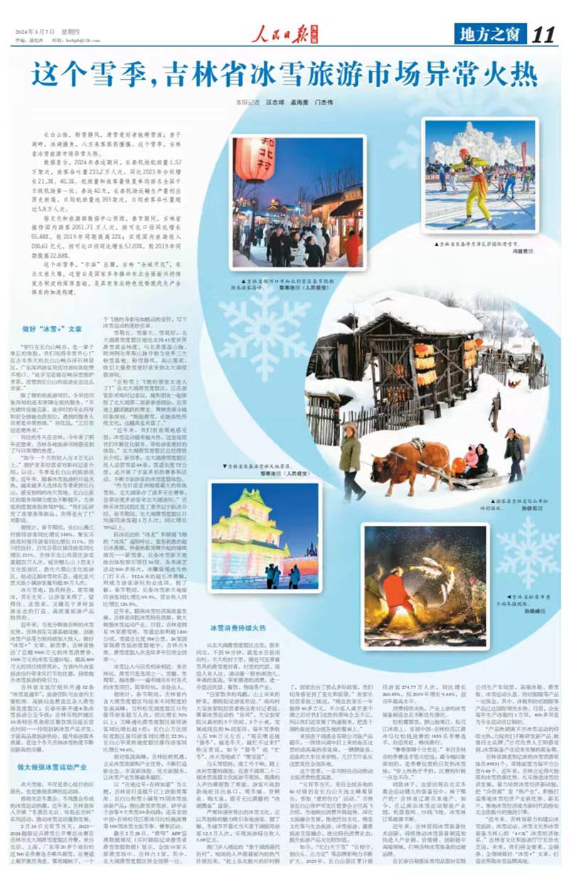 人民日?qǐng)?bào)海外版整版聚焦吉林:這個(gè)雪季,冰雪旅游市場(chǎng)異?;馃?!