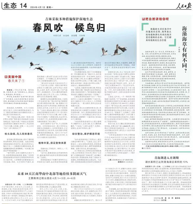 人民日?qǐng)?bào)關(guān)注吉林濕地生態(tài):春風(fēng)吹 候鳥歸